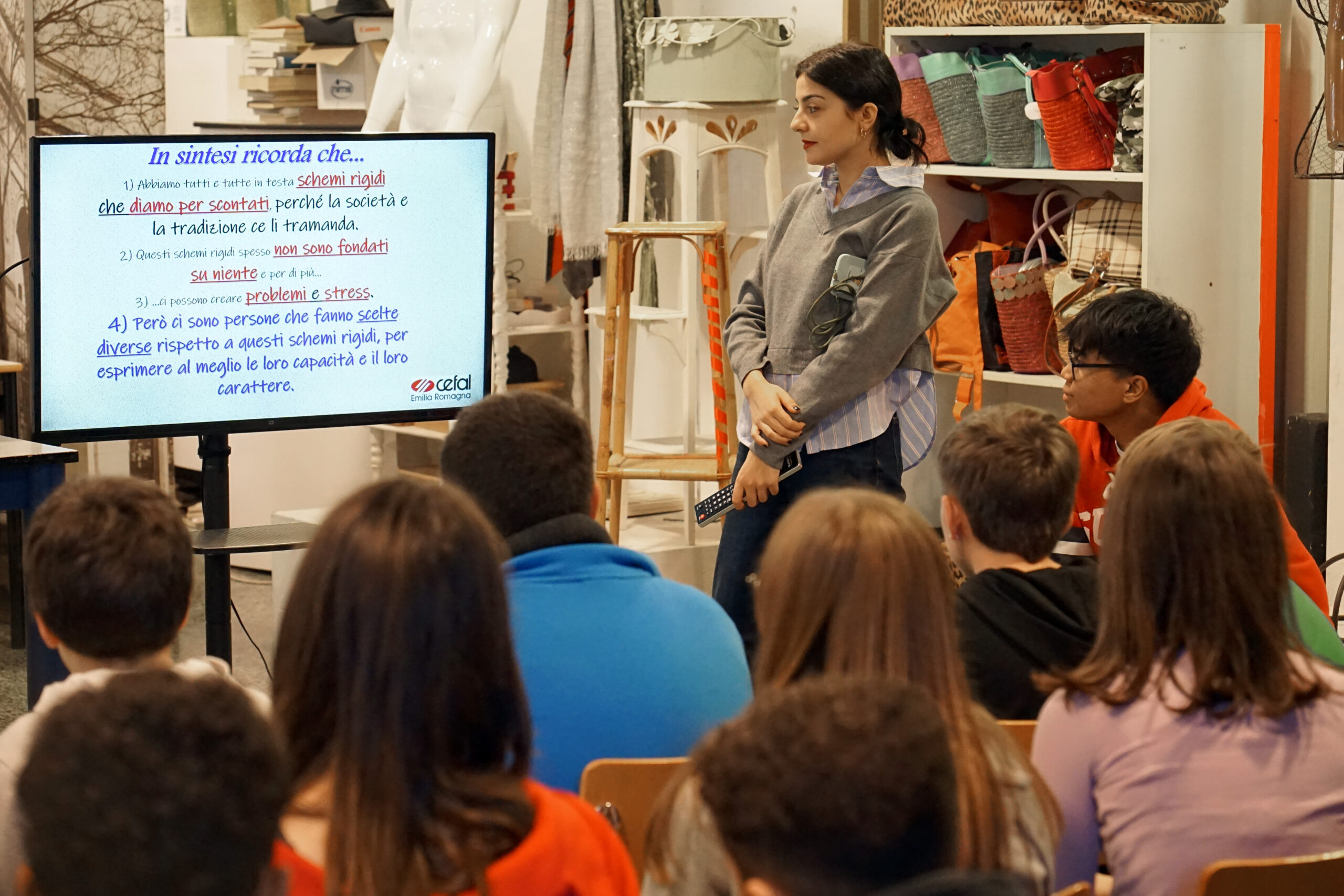 La classe terza del corso Operatore alle vendite della sede di Bologna ha realizzato nella giornata di martedì 29 ottobre il laboratorio “Mediawoman”, che ha coinvolto anche gli studenti e studentesse della scuola media di Pianoro.